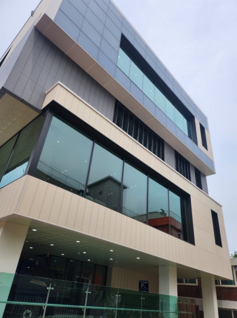 태양광 모듈에 컬러유리를 적용하여 심미성 향상한 건물 일체형 태양광 컬러 모듈 고 투과율 & 고 내구성 , 고온 및 UV 컬러변색 無, 건물 설치 시 이질감 없는 색상 구현 다양한 색상 구현(18가지 이상 가능) 기존 칼라모듈 기술 대비 단위면적당 7% 이상 고효율 고 투과율 & 고 내구성 고온 및 UV 등 컬러변색 無 건물 설치 시 이질감 없는 색상 구현 특허증 보유 건축물에 적용 가능한 컬러태양광모듈 건축물에 적용 가능하고 효율이 개선된 컬러태양광모듈 적용사례 × 강남데이터센터 / 892kW (2025.01 완공) 경기도서관 / 36.3kW (2024.11 완공) 마루온 / 41kW (2025.08 완공) 미래생활 / 59.8kW (2024.09 완공) 미아삼양 주상복합아파트 / 48.6kW (2025.07 완공) 금천평생학습관 / 5.1kW (2024.01 완공) 구로 생각공장 / 157.8kW (2025.07 완공) 경기주택도시공사(국내최대규모컬러BIPV) / 640.4kW (2023.11 완공) 한강유역환경청 / 46.51kW (2023.05 완공) 1 2 3 1 / 3